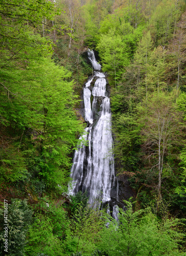 A view of Guzeldere Waterfall in Duzce, Turkey. This waterfall is one of the largest waterfalls in the country with a height of 130 meters.