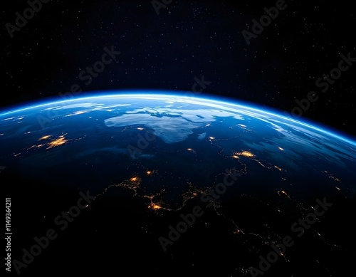 A view of the Earth from space, showing the planet's curved horizon and the night sky with stars in the background