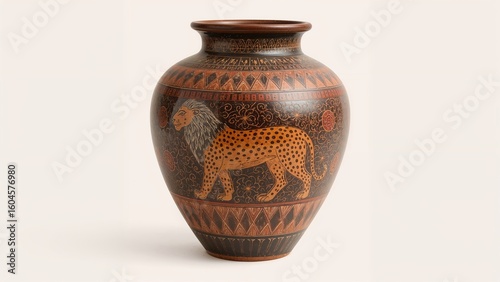 A vintage image of a beast portrayed on an ornamented earthenware jar