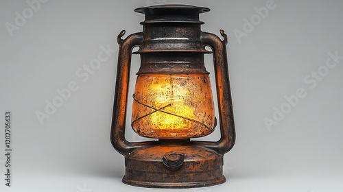 A vintage oil lantern with a warm glow, used for lighting in outdoor and indoor settings.