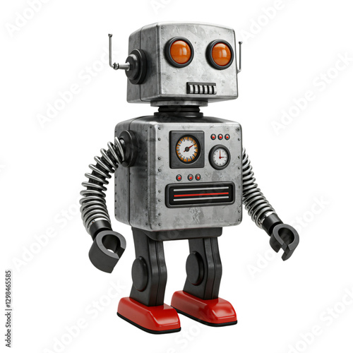 A vintage-style robot toy, rendered in a highly detailed 3D model