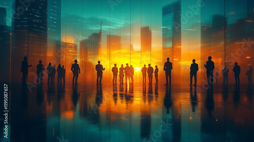 A virtual meeting scene with multiple professionals discussing a deal. Bright lighting, contrast