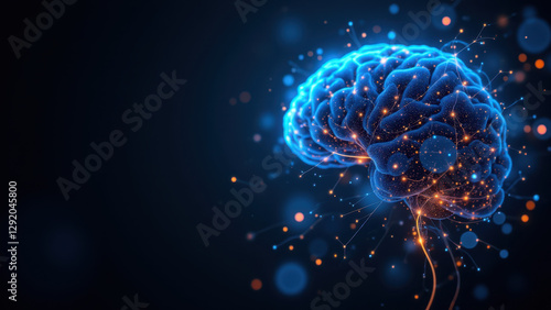 A visual metaphor for artificial general intelligence (AGI) featuring a stylized brain with neural connections emitting light particles.