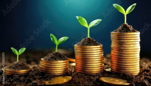 A visual metaphor of growth, featuring plants sprouting from stacks of coins, symbolizing the connection between finance and sustainable development.