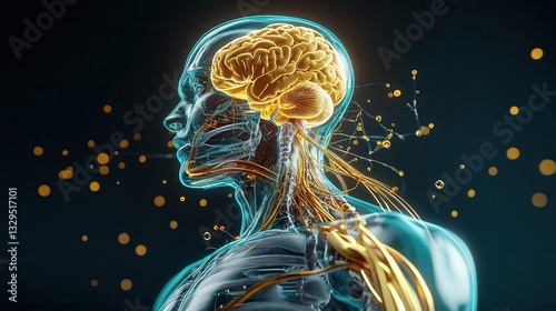 A visually striking and conceptually powerful digital visualization of the human brain showcasing its intricate anatomy and futuristic surreal aesthetic