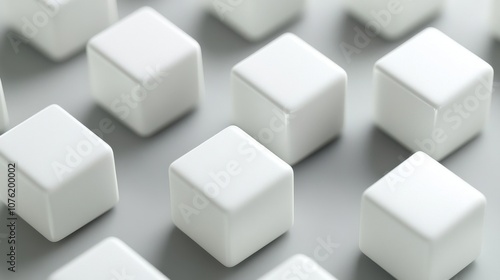 A visually striking arrangement of white cubes on a light gray background, creating a sense of order and simplicity.