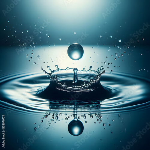 A visually striking image of a water droplet creates a splash and reflection, highlighting the symmetry and beauty.