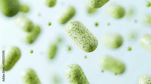 A visually striking image of floating green capsules, featuring a speckled texture, suggesting themes of health and nutrition.