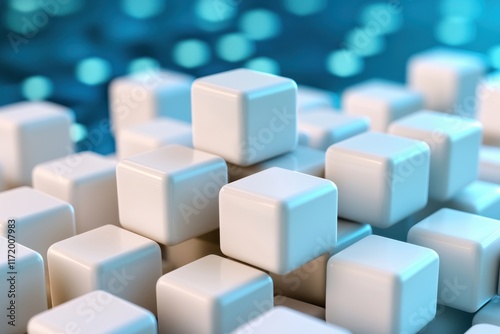 A visually stunning abstract technology background featuring a mesmerizing 3D rendering of interconnected white cube patterns creating a sense of depth and complexity.