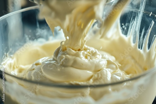 A vivid close-up showing a blender combining fresh fruit chunks and creamy yogurt , created by ai