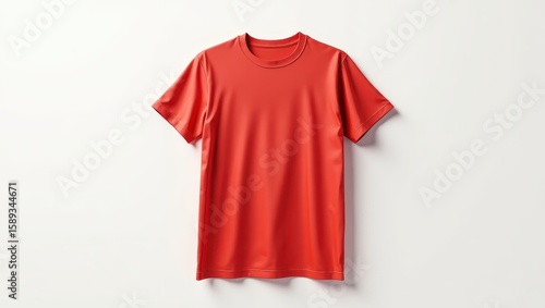 A vivid coral-colored short-sleeved t-shirt against a white background.