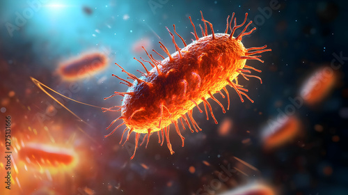A vivid depiction of a single bacterium under a microscope, showcasing intricate details and vibrant colors.
