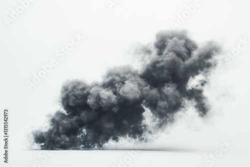 A voluminous plume of smoke against a white background, photographic style, concept of pollution or disaster Generative AI