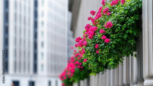 A Wall Street building covered in cascading ivy and vibrant spring flowers