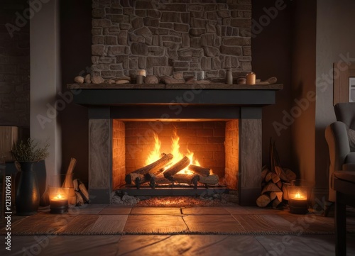 A warm and comforting glow emanating from a fireplace on a chilly evening, beaglichkeit, fire, glow