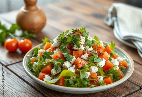 A warm and inviting Fattoush salad with fresh parsley and sumac