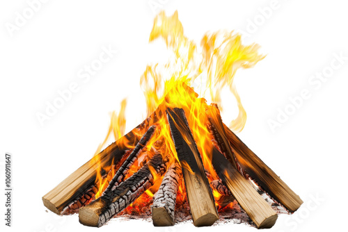 A warm, glowing campfire with vibrant flames and wooden logs, perfect for outdoor adventures and cozy gatherings under the night sky.