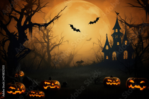 A warm Happy Halloween greeting using common seaonal colors and and icons such as yellow and orange and bats and spiders