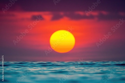 A warm sunset over the ocean on a cloudy day, perfect for beach or travel photography