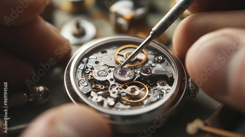 A watchmaker uses a screwdriver to repair a watch.