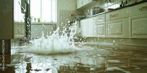 A water splash in the kitchen has caused serious home damage needing immediate cleanup