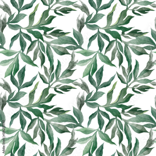 A watercolor seamless pattern of red peonies with leaves and flowers.