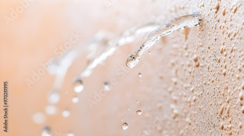 A water-damaged wall with peeling paint and mold growth, captured in a hyper-realistic style, water splashing from a burst pipe in the background, showcasing home insurance concerns, gloomy lighting