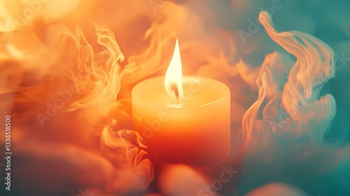 A wax candle with a delicate flame gently illuminates the surroundings, creating an intimate mood in a retro comic book illustration style.