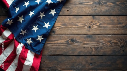 A weathered flag draped on rustic wooden planks, a symbol of heritage and remembrance
