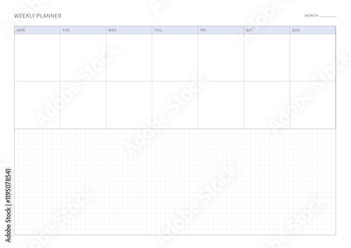 A weekly plan design template in a modern, simple, and minimalist style. Note, scheduler, diary, calendar, planner document template illustration.