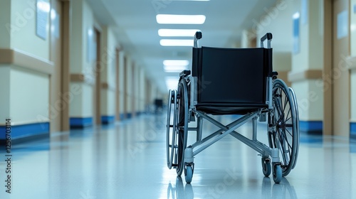 A wheelchair-friendly office hallway with wide space, accessibility ramps, and a welcoming design. Copy space.