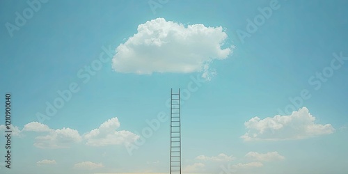 A whimsical depiction of a single ladder leading into the sky.