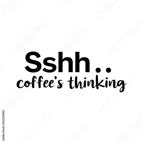 A whimsical typographic design presents the playful message "Sshh.. coffee's thinking". The minimalist aesthetic and bold typography create a visual treat. coffee lovers vector illustration