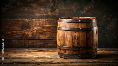 A whiskey barrel with a vintage distressed finish and a wooden lid, barrel storage, whiskey barrel, wood storage, vintage finish, whiskey aging process