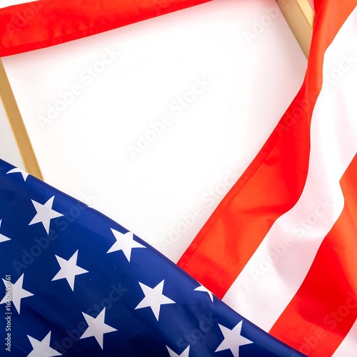 A white background framed by red and blue fabric, suggestive of a national flag