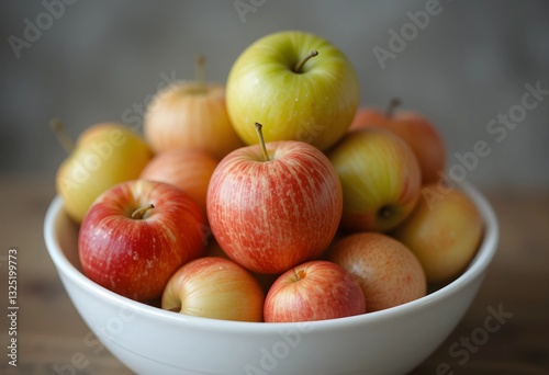 A white bowl filled with fresh red and green apples, showcasing vibrant colors and a healthy lifestyle concept.
