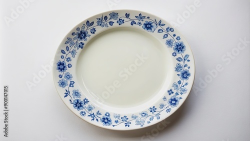 A white ceramic plate with delicate blue floral design, plate, ceramic, white, blue, floral, design, kitchenware, dining