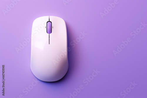 A white computer mouse on a purple background, a minimalist style with minimal retouching, featuring light pink and indigo hues, bright primary colors