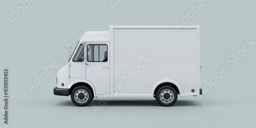 A white delivery step van or food truck shown from the side on a light gray background. Ideal for branding, logistics, or service mockups.