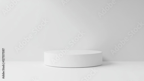 A white display pedestal placed against an all-white backdrop offers a versatile space for elegant product showcases or message overlays.