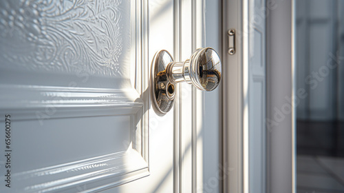 A white door with a silver handle