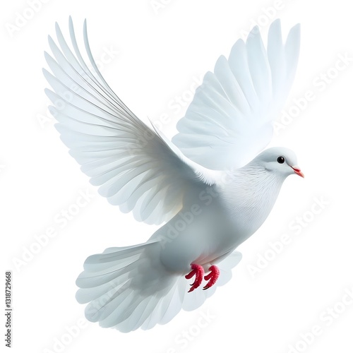 A white dove flying isolated on white background