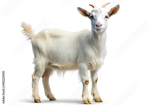a white goat standing against a white background