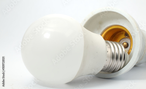 A white house lamp with its fittings on a white background. Used in a room, patio, garage, or living room.