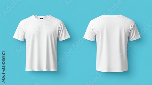 A white male tshirt mockup designed for men's apparel showcasing clean and versatile design, back and front, blue background, options for tshirt printing and advertisement purposes