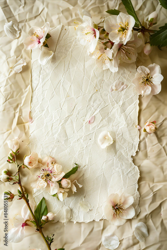 A white piece of paper with flowers and leaves.