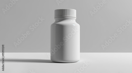 A white plastic bottle with a screw-on lid. The bottle is empty, ready for your label design.