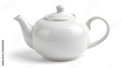 A white porcelain teapot, with its curved spout and handle, suggesting warmth and a moment of tea time.