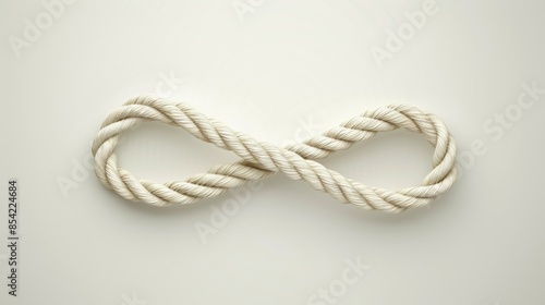 A white rope is tied in a knot, forming an infinity symbol, infinity sign concept
