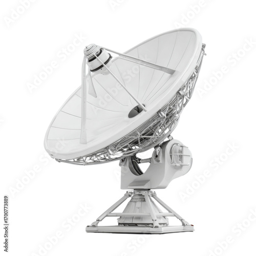 A white satellite dish is on a white background
